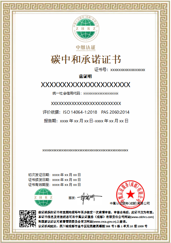 碳中和承诺证书样本